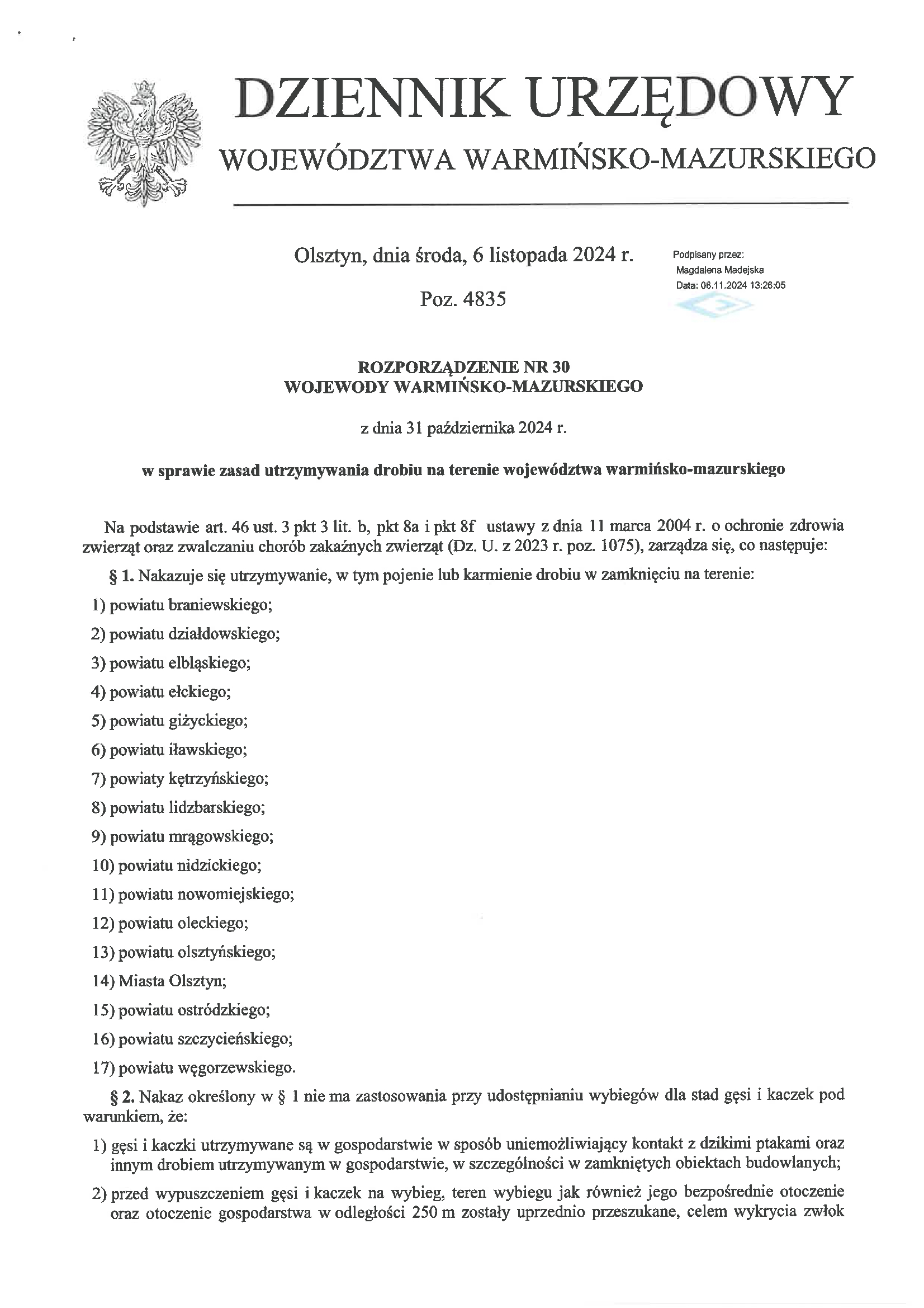INFORMACJA POWIATOWEGO LEKARZA WETERYNARII W SZCZYTNIE !!!