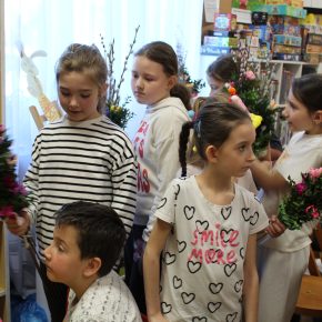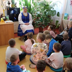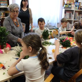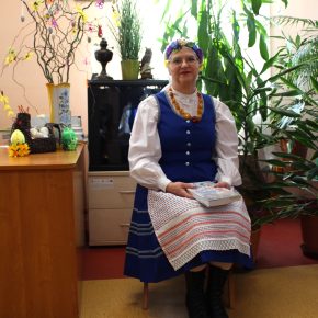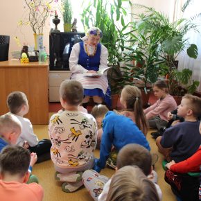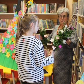 Tego samego dnia bibliotekę odwiedziła również p. Jolanta Pełka, reprezentantka Zespołu Pieśni i Tańca Jedwabno, wprowadziła grupę p. Katarzyny Trzcińskiej w świąteczny nastrój, czytając piękne wiersze o tematyce wielkanocnej.