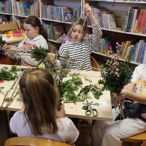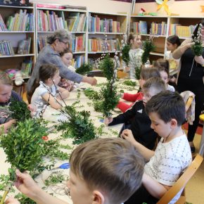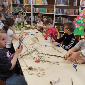 W Gminnej Bibliotece Publicznej w Jedwabnie odbyły się wyjątkowe spotkania o tematyce wielkanocnej. Pani Henryka Budna wraz z p. Marią Mazur przeprowadziły warsztaty robienia palm wielkanocnych. W zajęciach wzięły udział dzieci z klasy p. Wioletty Rajkowskiej, a każda z wykonanych palm była prawdziwym małym dziełem sztuki. Pani Henryka, jak zawsze, włożyła ogrom pracy i serca w przygotowanie warsztatów, dzięki czemu dzieci mogły nie tylko rozwijać swoją kreatywność, ale także zabrać do domu wyjątkową, własnoręcznie wykonaną palmę. Dodatkowo podarowała bibliotece przepiękną palmę, która aż do świąt będzie zdobić wnętrze, przypominając o ciepłej atmosferze spotkania.