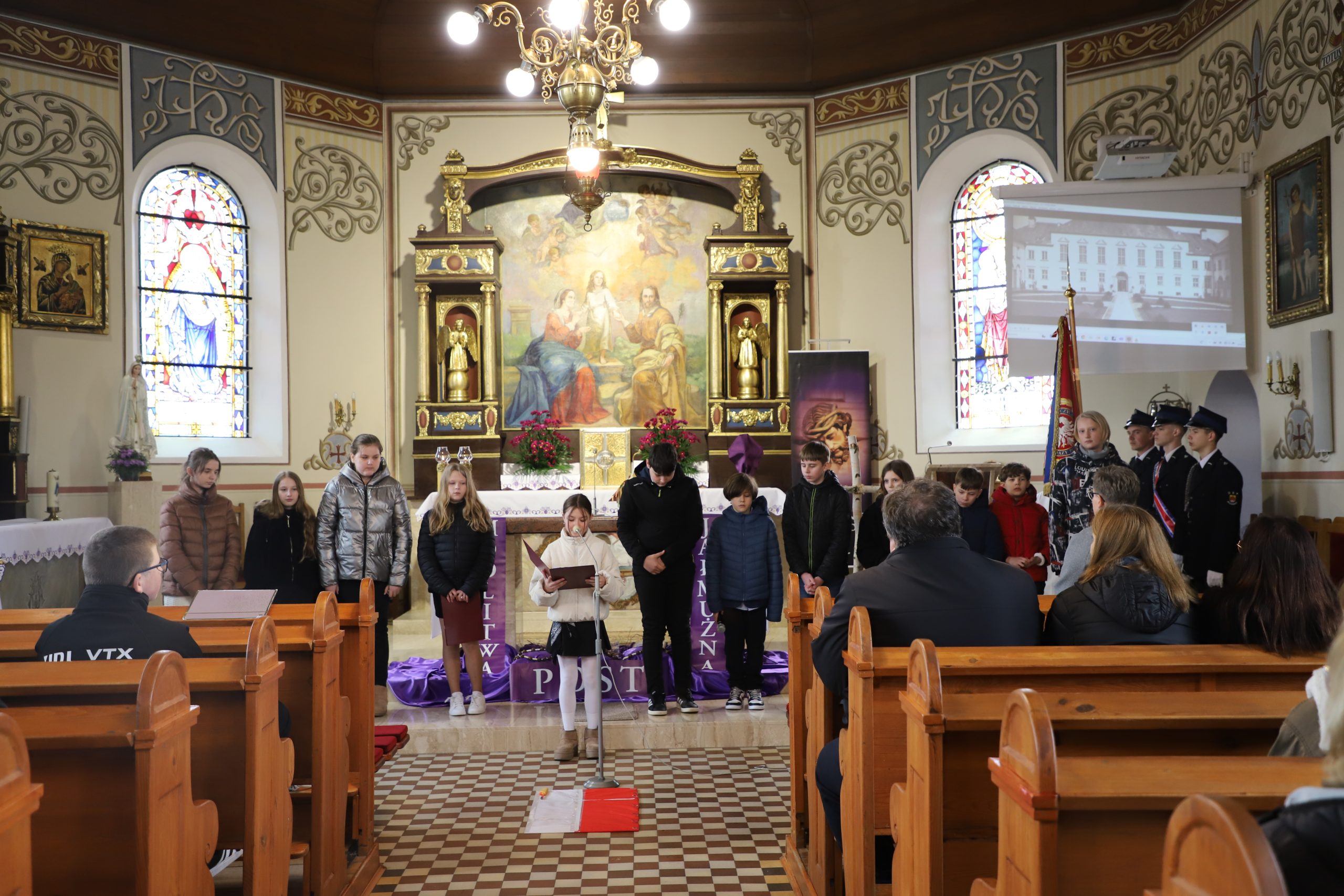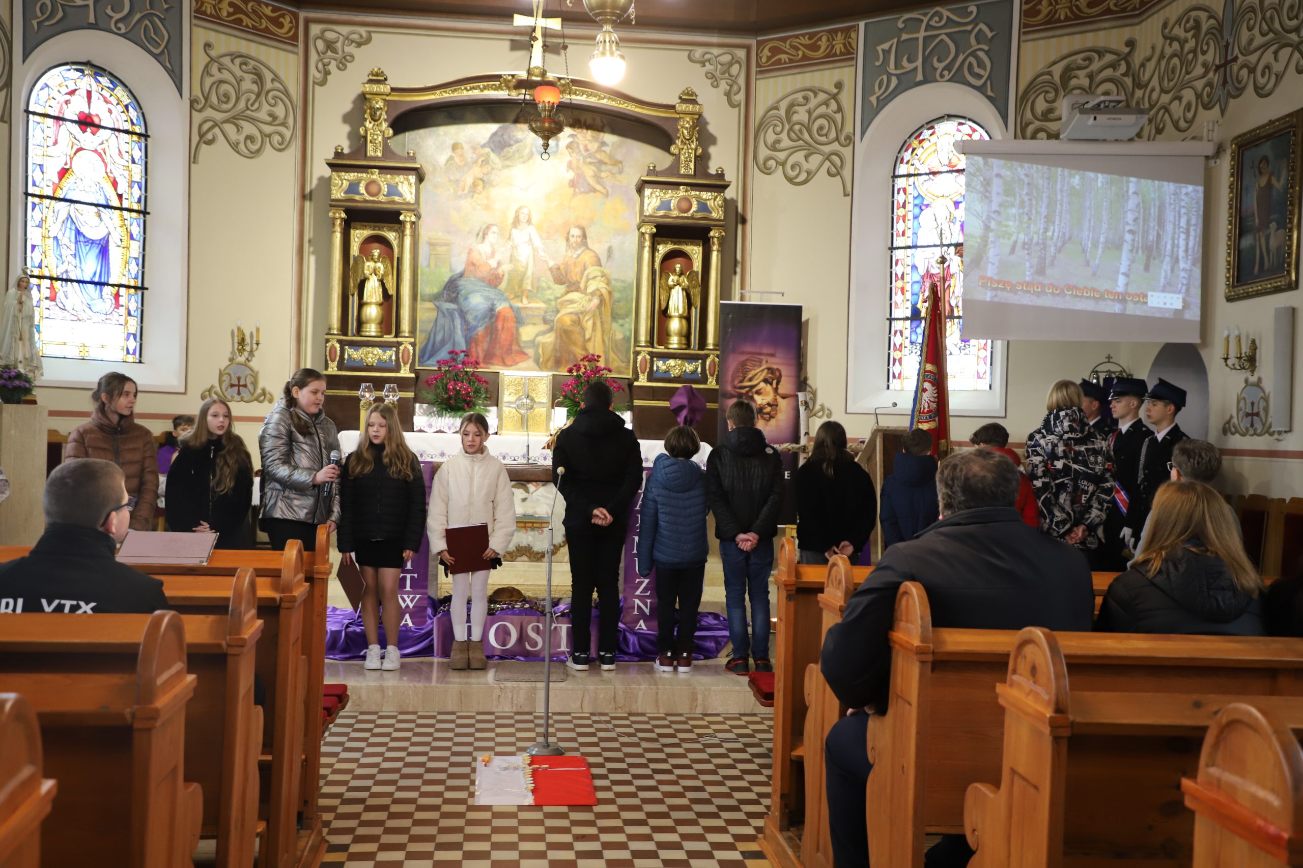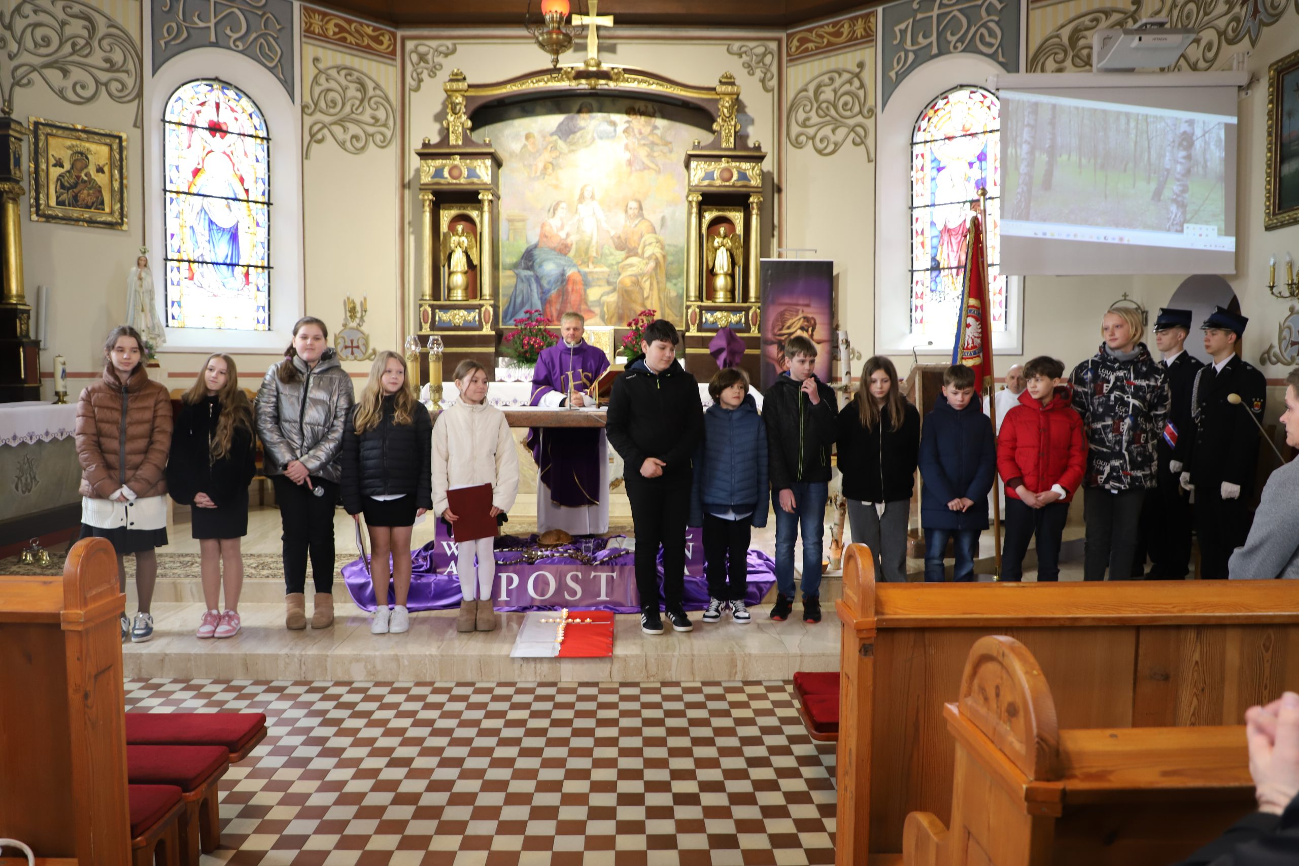 Uroczystości rozpoczęły się Mszą Świętą w intencji ofiar Zbrodni Katyńskiej i Katastrofy Smoleńskiej. Liturgia zgromadziła licznie przybyłych mieszkańców gminy, przedstawicieli władz lokalnych i organizacji, uczniów, nauczycieli oraz poczty sztandarowe. Modlitwie przewodniczył proboszcz parafii w Jedwabnie ks. Proboszcz Roman Lompa, który w homilii podkreślił wagę pamięci narodowej i konieczność przekazywania jej młodszym pokoleniom.
