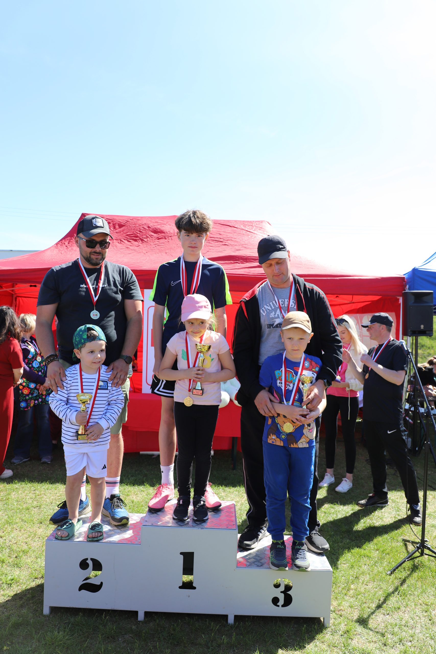 Celem biegu było promowanie aktywności fizycznej, integracja społeczności lokalnej oraz wspólne świętowanie przy pięknej, majowej pogodzie. Na uczestników i gości czekały atrakcje kulinarne – gofry i wata cukrowa, serwowane przez członków Caritas, a także aromatyczna zupa chłopska, przygotowana przez Gminne Koło Gospodyń Wiejskich w Jedwabnie. Rozgrzewkę poprowadził Igor Jędrzejczyk. A o atrakcje dla najmłodszych zadbały jednostki OSP KSRG Jedwabno, Ochotnicza Straż Pożarna w Szuci.