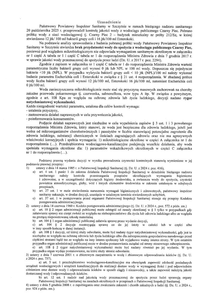 3. KOMUNIKAT o braku przydatności wody do spożycia w miejscowości Czarny Piec.