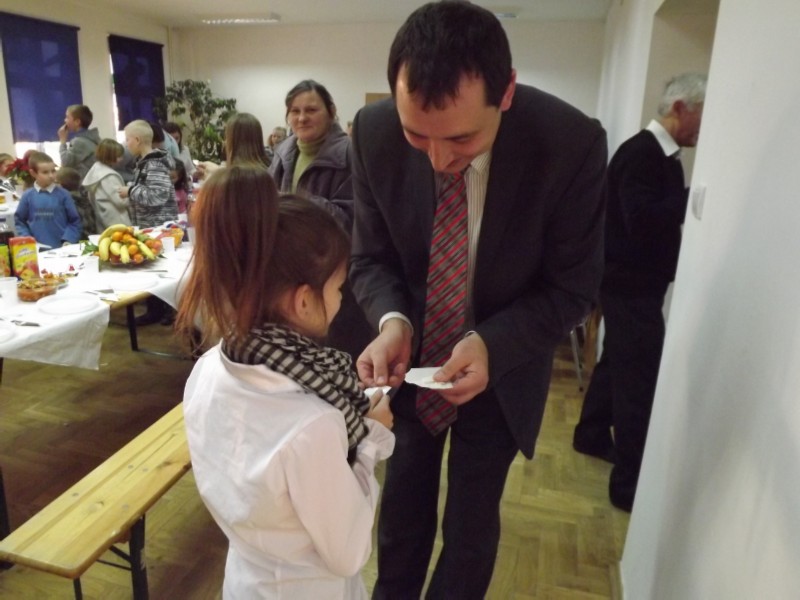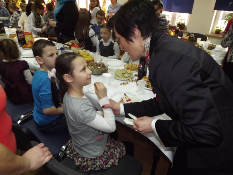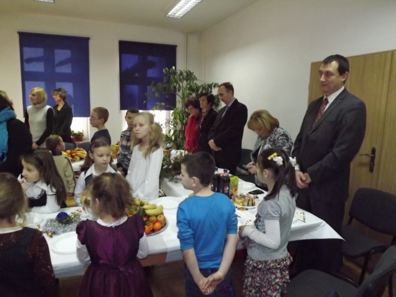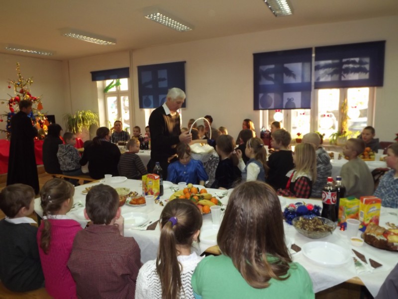 Dnia 21.12.2012 roku w Gminnym Ośrodku Kultury w Jedwabnie odbyła się Wieczerza Wigilijna zorganizowana przez Parafialny Zespół Caritas działający przy Kościele Parafialnym p.w. św. Józefa w Jedwabnie. Zespół prowadzi Ksiądz Proboszcz Roman Lompa. Wieczerza ta zorganizowana została dla dzieci, które wytypował Gminny Ośrodek Pomocy Społecznej. W kościele w Jedwabnie do niedawna stała choinka, na której wisiały aniołki z imionami dzieci dla których ludzie szczodrego serca zrobili paczki. Wieczerzę Wigilijną rozpoczął Ksiądz Proboszcz modlitwą, następnie wszyscy obecni podzielili się opłatkiem. Świąteczne życzenia uczestnikom Wieczerzy złożył Krzysztof Otulakowski Wójt Gminy Jedwabno. W oczekiwaniu na przybycie Mikołaja dzieci brały udział w konkursach i zabawach. W końcu nadszedł długo oczekiwany przez dzieci moment, przybył do nich Święty Mikołaj- biskup z Mirry i wręczył im wspaniałe podarki. Dzieci odwdzięczyły się organizatorom Wieczerzy występem artystycznym. W Wieczerzy Wigilijnej uczestniczyły także władze gminy: Maria Sienkiewicz Przewodnicząca Rady Gminy Jedwabno, Krzysztof Otulakowski Wójt Gminy Jedwabno oraz Jolanta Drężek Sekretarz Gminy Jedwabno. Potrawy na Wigilijny Stół przygotowały Panie z Koła Gospodyń Wiejskich w Szuci. Spotkanie o takim charakterze w Gminie Jedwabno odbyło się po raz pierwszy. W imieniu obdarowanych dzieci serdecznie dziękujemy organizatorom.