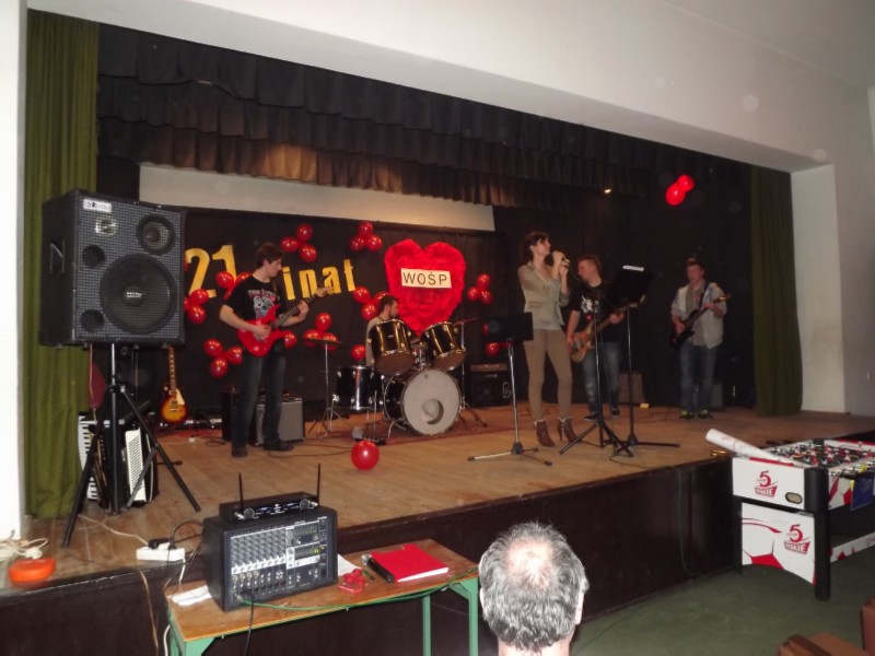 Finał WOŚP odbył się w Gminnym Ośrodku Kultury. Na scenie zaprezentowali się: zespół muzyczny EWELMEN, zespół rokowy BEZKITU, a także wychowankowie z GOKu: zespół wokalny i zespół taneczny oraz Teatr Ognia ?Nocne motyle?. Ważnym elementem spotkania była licytacja podarowanych przedmiotów, wylicytować można było: tort, książki, zegar, płaskorzeźby, wyrzynarkę oraz piłkarzyki. Wszystkie rzeczy zlicytowano za łączną kwotę 1.180,00 złotych. Uwieńczeniem całego dnia kwestowania dla WOŚP było światełko do nieba.