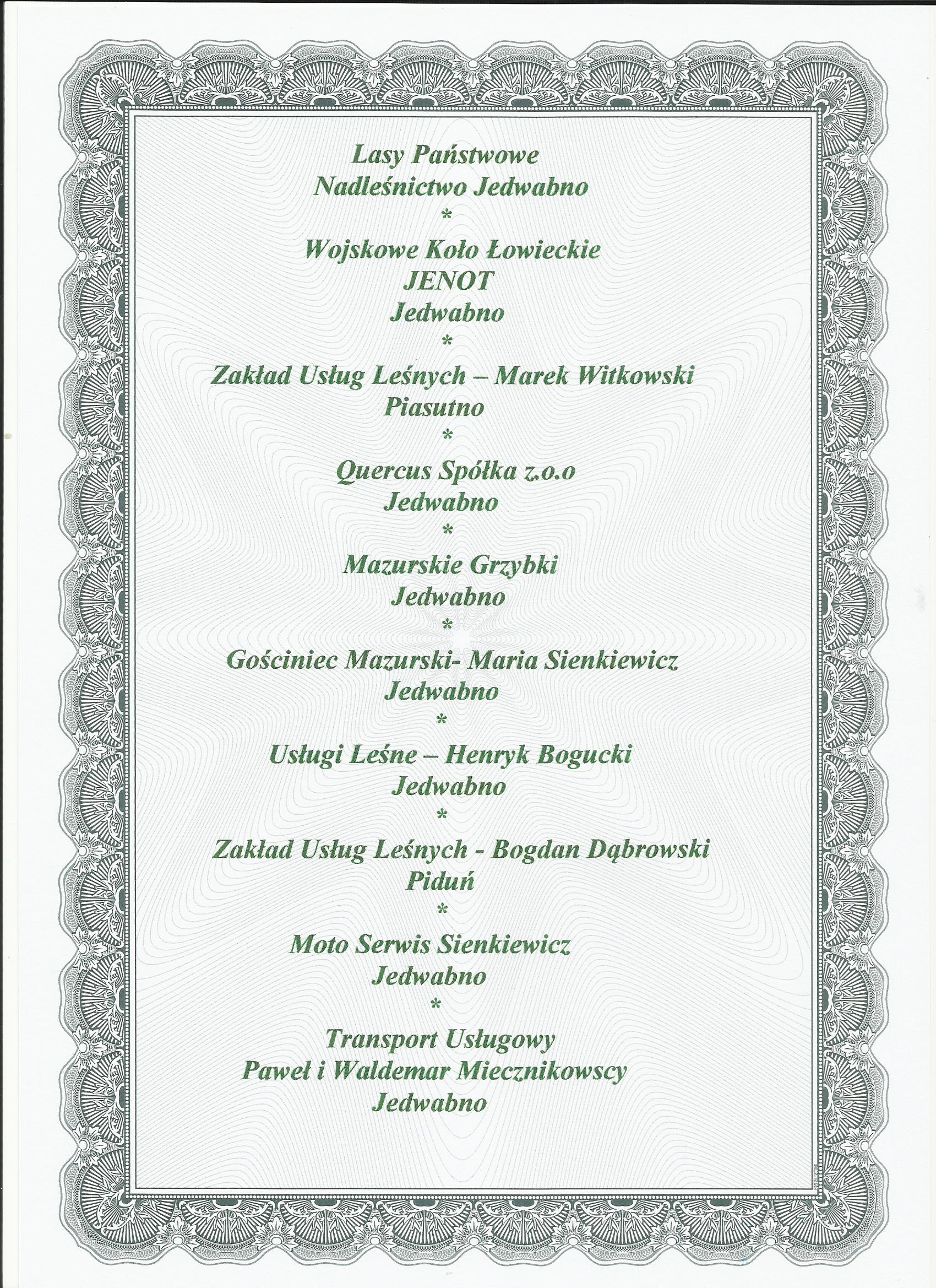 Podziękowania dla darczyńców cd.
