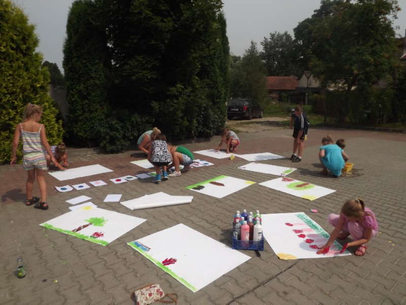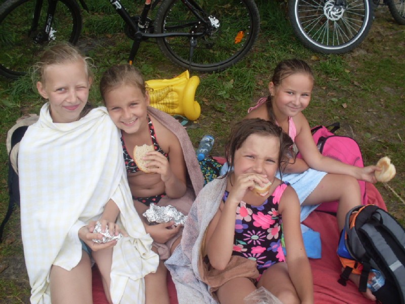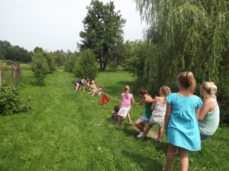 Trzydniowe wakacje zorganizowane przez Gminny Ośrodek Kultury dla dzieci okazały się strzałem w dziesiątkę. Ten czas dzieci spędziły bardzo intensywnie i aktywnie. Pierwszego dnia odbyły się na dziedzińcu GOK zajęcia plastyczne. Dzieci swoje prace wykonywały malując dłońmi. Potem wzięły udział w konkurencjach sportowych. Artystyczny dzień zakończył się pysznymi kiełbaskami z grilla. Drugiego dnia odbyła się wycieczka rowerowa na jezioro Narty(Świętajno) oczywiście zakończona kąpielą w jeziorze i znakomitymi hamburgerami. Trzeci dzień był najbardziej wyczekiwany przez wszystkie dzieci, gdyż tego dnia miały odwiedzić Stadninę koni w Zimnej Wodzie. I tak, też się stało. Wszyscy uczestnicy wycieczki jeździli konno, dodatkowo mieli okazję zobaczyć jak dbać o konie. Nie małą atrakcją była przejażdżka wozem drabiniastym. Skumulowane w trzy dni wakacje były pełne przygód i pozostawiły niedosyt na więcej.