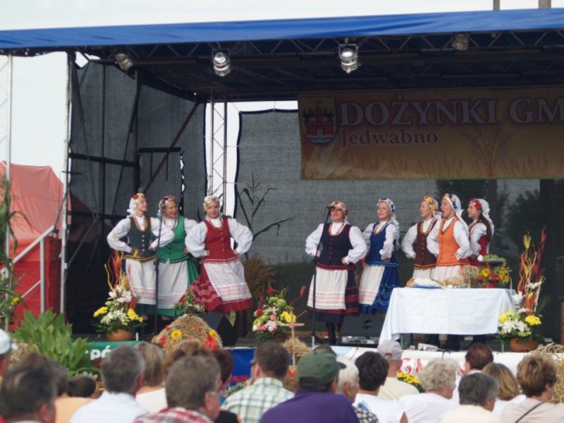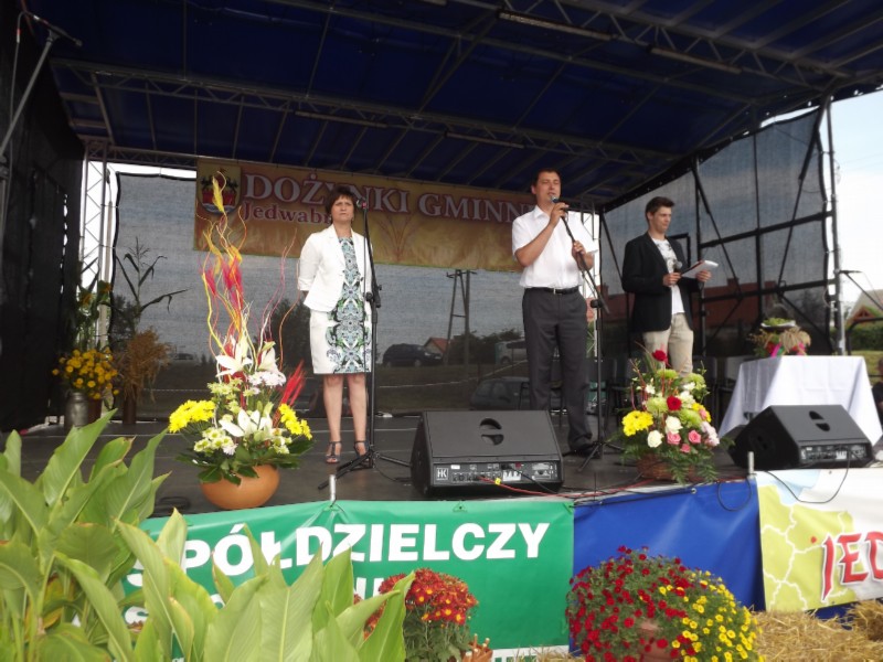 Uroczystość dożynkową rozpoczęła Msza Dziękczynna za zebrane plony odprawiona przez Proboszcza Parafii w Jedwabnie Romana Lompę, która odbyła się w kościele p.w. św Józefa w Jedwabnie. Następnie korowód dożynkowy spod kościoła wyruszył na stadion sportowy gdzie odbyły się obchody Dożynek Gminnych 2013. Najważniejszymi gośćmi uroczystości byli rolnicy i ich rodziny z terenu naszej gminy. Na scenie Wójt Gminy Krzysztof Otulakowski wraz z Marią Sienkiewicz Przewodnicząca Rady Gminy Jedwabno podziękowali wszystkim rolnikom za ich ciężką pracę, dzięki której codziennie trafia na nasze stoły chleb, za ich trud oraz zaangażowanie jakie wkładają w pracę oraz życzyli zawsze udanych plonów. Do życzeń tych dołączył się również Starosta Powiatu Szczycieńskiego Jarosław Matłach oraz Grzegorz Zapadka – Wójt zaprzyjaźnionej Gminy Wielbark. Następnie Gospodarz Dożynek Wójt Gminy Krzysztof Otulakowski przyjął od Starostów Dożynek – Henryki i Bogdana Januszkiewicz z Jedwabna, chleb dożynkowy upieczony z tegorocznego ziarna i wspólnie z Księdzem Proboszczem oraz Starostą Szczycieńskim dzielił chleb wśród wszystkich przybyłych na Dożynki. Po uroczystościach dożynkowych nadszedł czas na rozstrzygnięcie gminnych konkursów. Do Konkursu na Najpiękniejszy Wieniec Dożynkowy zgłoszone zostały dwa wieńce wykonane przez Stowarzyszenie Koło Gospodyń Wiejskich w Szuci oraz Parafialny Zespół Caritas działający przy Parafii w Jedwabnie. Zwyciężył wieniec Koła Gospodyń Wiejskich z Szuci. W skład komisji konkursowej weszli: Mariusz Dobrzyński, Mirosław Łachacz oraz Jolanta Falarz. Następnie ogłoszone zostały wyniki konkursu ?Estetyczna Zagroda 2013?, którego organizatorem było Sołectwo Jedwabno oraz Gminny Ośrodek Kultury w Szczytnie. Laureatami konkursu zostali I miejsce Barbara Przybysz, II miejsce Henryka Budna, III miejsce Teresa Adamowsky. W skład Komisji Konkursowej weszli Karolina Ważna, Elżbieta Brzóska oraz Jerzy Adamiak ? przewodniczący komisji. Po oficjalnej części Dożynek nadszedł czas na zabawę. I tak, na scenie zaprezentowały się młode talenty z Gminnego Ośrodka Kultury w Jedwabnie oraz artyści z Fundacji Kreolia ? Kraina Kreatywności z Jerutek. Publiczność rozgrzewały takie zespoły jak: zespół disco-polo EVERSEST oraz zespół hip hopowy FRESHIGH. Gwiazdą wieczoru była ETNA, która dla zgromadzonej publiczności dała wspaniały koncert. Gdy zapadł zmrok zaprezentował się także Teatr Ognia ?The Jugglers?. Dyskotekę pod chmurką poprowadził DJ SOCHA.