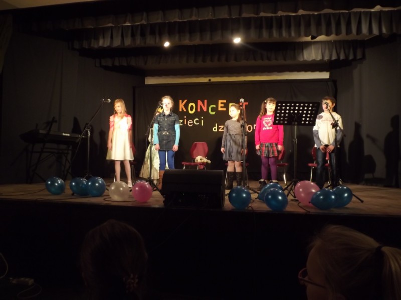 Dnia 08.11.2013 rok w Gminnym Ośrodku Kultury odbył się koncert pt. „Dzieci dzieciom”. Artyści w osobach: Zofia Pieńkosz, Maja Struniawska, Aleksandra Gromek, Bartosz Piórkowski, Arleta Gnoza i Julia Zalewska przygotowali pod kierunkiem Jerzego Pałasza oraz Karoliny Ważnej koncert dla przedszkolaków. Na scenie wystąpiła także grupa taneczna z GOKu, której instruktorem jest Klaudia Piersa. Publiczność bawiła się świetnie, a młodzi artyści zaprezentowali się wspaniale.