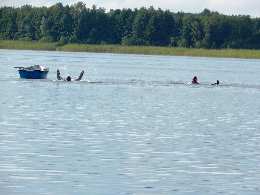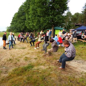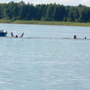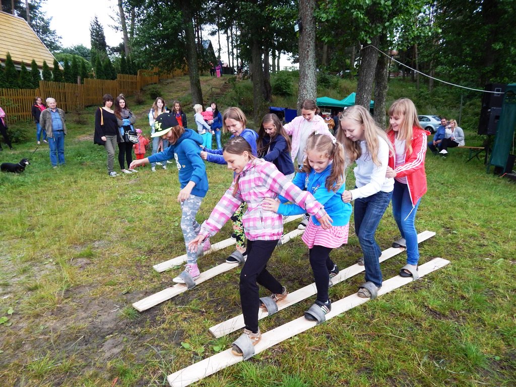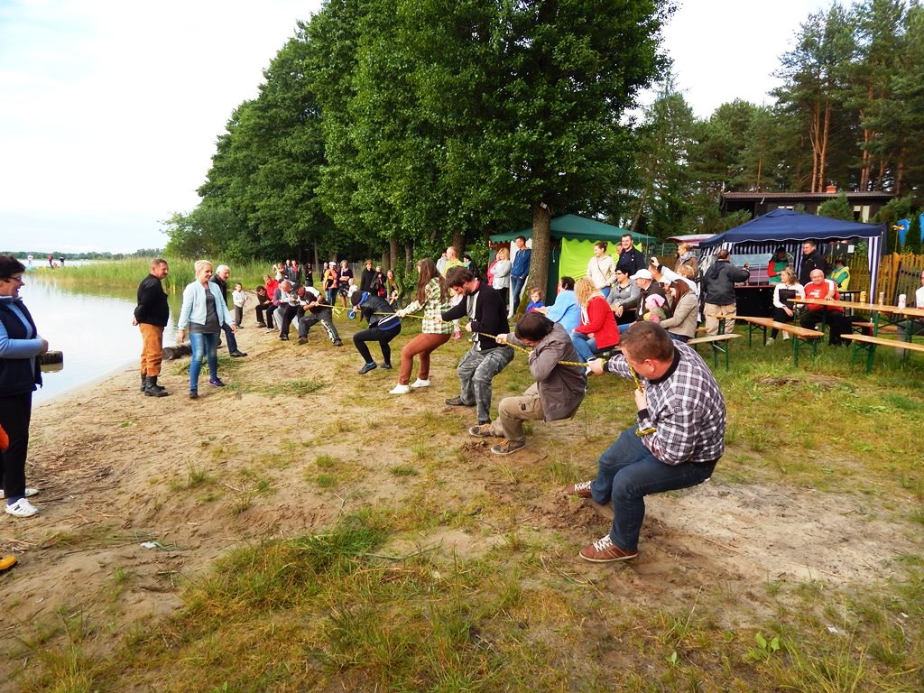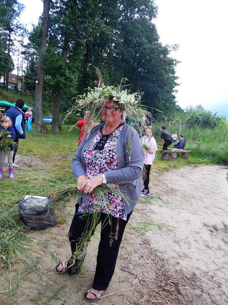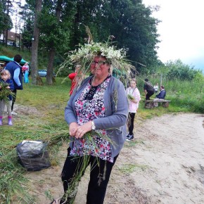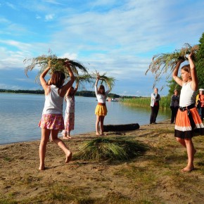 „Świętojanki” jest to święto związane z letnim przesileniem słońca, obchodzone w czasie najkrótszej nocy w roku. Jest to święto ognia, wody, słońca i księżyca, urodzaju, płodności, radości i miłości. Świętojanki w Nartach rozpoczęły się od poszukiwania kwiatu paproci. Kwiat ten według legendy, świecił niezwykłym blaskiem i miał wskazywać drogę do ukrytych w ziemi skarbów, a temu, kto go znalazł odsłonić wszystkie tajemnice i mądrości świata, zapewnić wielkie bogactwo i szczęście. Dziewczęta szukały go więc, mając nadzieję, że przyniesie im wielką miłość. Chłopcy liczyli, że kwiat da im bogactwo, które taką miłość im zapewni. Szczęśliwym znalazcą został chłopiec. Następnie odbył się edukacyjny pokaz ratowniczy Fundacji Autrimpus Szczytno. Ratownicy medyczni udzielali pomocy medycznej osobom, które pozorowały wypadek z łódki i zaczęły się topić. Akcja ratownicza oczywiście przebiegła pomyślnie i z sukcesem, a na koniec wszystkim obserwatorom przedstawione zostały podstawowe zasady bezpiecznego zachowania się nad akwenem wodnym. Świętojańskie swawole otworzył taniec rusałek z wiankami, na co dzień członkiń grupy tanecznej z GOKu. Nadszedł czas na zabawę i konkurencje sportowe takie jak: przeciąganie liny, bieg na nartach czy rzuty surowym jajkiem. Brali w nich udział zarówno mieszkańcy, jak i przybyli turyści. W nastrojowy klimat wprowadził uczestników imprezy zespół muzyczny”Ę” ze Szczytna. Piękny głos wokalistki, nietypowe instrumenty i szeroki uśmiech Arka Górskiego instruktora gry na gitarze z GOKu w Jedwabnie, to atrybuty tego zespołu. W między czasie rozpoczęło się plecenie i puszczanie na wodę wianków. Jest to najważniejszy obrzęd dziewczęcy, który zachował się do naszych czasów. Dziewczęta na wydaniu powinny wić wianki (symbol swego dziewictwa). Wianek rzuca się na wodę i bacznie obserwuje w jaki sposób płynie. Jeżeli wyłowi je miły sercu chłopiec, jest to wróżba najlepsza. Gorzej jednak, jeśli wianek zaplączę się w roślinach wodnych, bo to oznacza, że jego właścicielka pozostanie w panieńskim stanie co najmniej przez rok. Najgorszą wróżbą jest przewrócenie się lub zatonięcie wianka. Oznacza to kłopoty miłosne i życiowe, nieodwzajemnioną miłość, staropanieństwo lub smutek. Wianek, na którym zgasła świeczka, lub którego nikt nie wyłowił, oznacza natomiast brak kandydatów na narzeczonych, a taki, który utknął w sitowiu, zwiastuje niechcianą ciążę. Ważnym elementem nocy Świętojańskiej jest magia właśnie o to zadbali też organizatorzy – podczas imprezy obecna była wróżka. Następnie rozpalono ognisko. Ogień był i jest niezwykle ważnym symbolem obchodów świętojańskich. Kiedyś nie tylko palono ogniska, ale także obchodzono z płonącymi pochodniami wokół pól, by odgonić złe uroki. Kiedyś wokół ognisk tańczyły biało ubrane dziewczęta, przepasane bylicą, czarodziejskim zielem o niezwykłej mocy i śpiewały pieśni miłosne. Wierzono, że bylica, a także piołun, dziurawiec, mięta, ruta, biedrzeniec, czarny bez, leszczyna – w noc św. Jana nabierają szczególnych, leczniczych i czarodziejskich mocy. Przede wszystkim bylica, najważniejsze ziele świętojańskie, miała płoszyć czarownice i odpędzać od domów wszelkie zło, czyli przeciwdziałać czarom. Wieszano więc ją na drzwiach domów, obór i stajen, noszono zaszytą w odzieży, wrzucano w świętojańskie ogniska. Przy ognisku uczestnicy zabawy posilili się kiełbaskami i czekali na teatr ognia. Około godziny 22:00 wystąpił Teatr Ognia z Jedwabna w trzy osobowym składzie: Weronika Bagier, Martyna Bączek i Robert Klóskowski. Młodze samouki dali niesamowity pokaz, który wzbudził wśród widzów ogromne owacje. I na tym zakończył się ten magiczny wieczór nad jeziorem Świętajno w Nartach i mimo zmiennej aury czasami bardzo nie przyjemnej to śmiało można stwierdzić, że atmosfera podczas imprezy była iście magiczna.