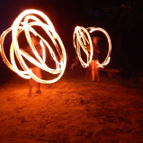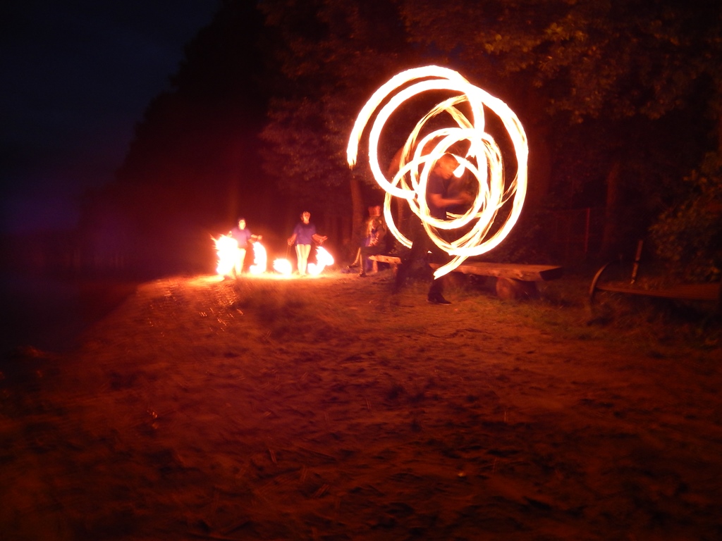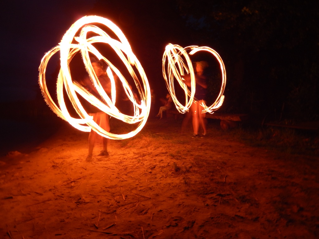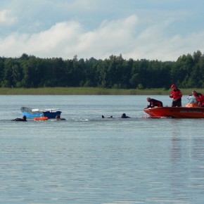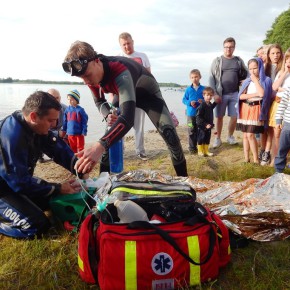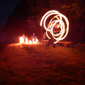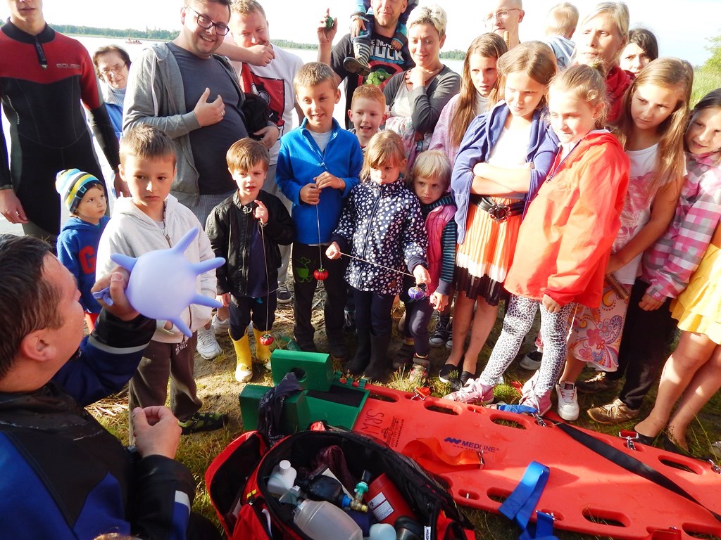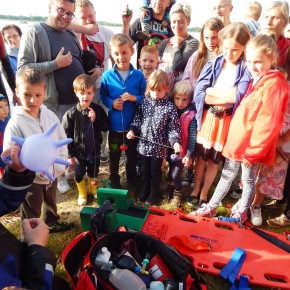 „Świętojanki” jest to święto związane z letnim przesileniem słońca, obchodzone w czasie najkrótszej nocy w roku. Jest to święto ognia, wody, słońca i księżyca, urodzaju, płodności, radości i miłości. Świętojanki w Nartach rozpoczęły się od poszukiwania kwiatu paproci. Kwiat ten według legendy, świecił niezwykłym blaskiem i miał wskazywać drogę do ukrytych w ziemi skarbów, a temu, kto go znalazł odsłonić wszystkie tajemnice i mądrości świata, zapewnić wielkie bogactwo i szczęście. Dziewczęta szukały go więc, mając nadzieję, że przyniesie im wielką miłość. Chłopcy liczyli, że kwiat da im bogactwo, które taką miłość im zapewni. Szczęśliwym znalazcą został chłopiec. Następnie odbył się edukacyjny pokaz ratowniczy Fundacji Autrimpus Szczytno. Ratownicy medyczni udzielali pomocy medycznej osobom, które pozorowały wypadek z łódki i zaczęły się topić. Akcja ratownicza oczywiście przebiegła pomyślnie i z sukcesem, a na koniec wszystkim obserwatorom przedstawione zostały podstawowe zasady bezpiecznego zachowania się nad akwenem wodnym. Świętojańskie swawole otworzył taniec rusałek z wiankami, na co dzień członkiń grupy tanecznej z GOKu. Nadszedł czas na zabawę i konkurencje sportowe takie jak: przeciąganie liny, bieg na nartach czy rzuty surowym jajkiem. Brali w nich udział zarówno mieszkańcy, jak i przybyli turyści. W nastrojowy klimat wprowadził uczestników imprezy zespół muzyczny”Ę” ze Szczytna. Piękny głos wokalistki, nietypowe instrumenty i szeroki uśmiech Arka Górskiego instruktora gry na gitarze z GOKu w Jedwabnie, to atrybuty tego zespołu. W między czasie rozpoczęło się plecenie i puszczanie na wodę wianków. Jest to najważniejszy obrzęd dziewczęcy, który zachował się do naszych czasów. Dziewczęta na wydaniu powinny wić wianki (symbol swego dziewictwa). Wianek rzuca się na wodę i bacznie obserwuje w jaki sposób płynie. Jeżeli wyłowi je miły sercu chłopiec, jest to wróżba najlepsza. Gorzej jednak, jeśli wianek zaplączę się w roślinach wodnych, bo to oznacza, że jego właścicielka pozostanie w panieńskim stanie co najmniej przez rok. Najgorszą wróżbą jest przewrócenie się lub zatonięcie wianka. Oznacza to kłopoty miłosne i życiowe, nieodwzajemnioną miłość, staropanieństwo lub smutek. Wianek, na którym zgasła świeczka, lub którego nikt nie wyłowił, oznacza natomiast brak kandydatów na narzeczonych, a taki, który utknął w sitowiu, zwiastuje niechcianą ciążę. Ważnym elementem nocy Świętojańskiej jest magia właśnie o to zadbali też organizatorzy – podczas imprezy obecna była wróżka. Następnie rozpalono ognisko. Ogień był i jest niezwykle ważnym symbolem obchodów świętojańskich. Kiedyś nie tylko palono ogniska, ale także obchodzono z płonącymi pochodniami wokół pól, by odgonić złe uroki. Kiedyś wokół ognisk tańczyły biało ubrane dziewczęta, przepasane bylicą, czarodziejskim zielem o niezwykłej mocy i śpiewały pieśni miłosne. Wierzono, że bylica, a także piołun, dziurawiec, mięta, ruta, biedrzeniec, czarny bez, leszczyna – w noc św. Jana nabierają szczególnych, leczniczych i czarodziejskich mocy. Przede wszystkim bylica, najważniejsze ziele świętojańskie, miała płoszyć czarownice i odpędzać od domów wszelkie zło, czyli przeciwdziałać czarom. Wieszano więc ją na drzwiach domów, obór i stajen, noszono zaszytą w odzieży, wrzucano w świętojańskie ogniska. Przy ognisku uczestnicy zabawy posilili się kiełbaskami i czekali na teatr ognia. Około godziny 22:00 wystąpił Teatr Ognia z Jedwabna w trzy osobowym składzie: Weronika Bagier, Martyna Bączek i Robert Klóskowski. Młodze samouki dali niesamowity pokaz, który wzbudził wśród widzów ogromne owacje. I na tym zakończył się ten magiczny wieczór nad jeziorem Świętajno w Nartach i mimo zmiennej aury czasami bardzo nie przyjemnej to śmiało można stwierdzić, że atmosfera podczas imprezy była iście magiczna.