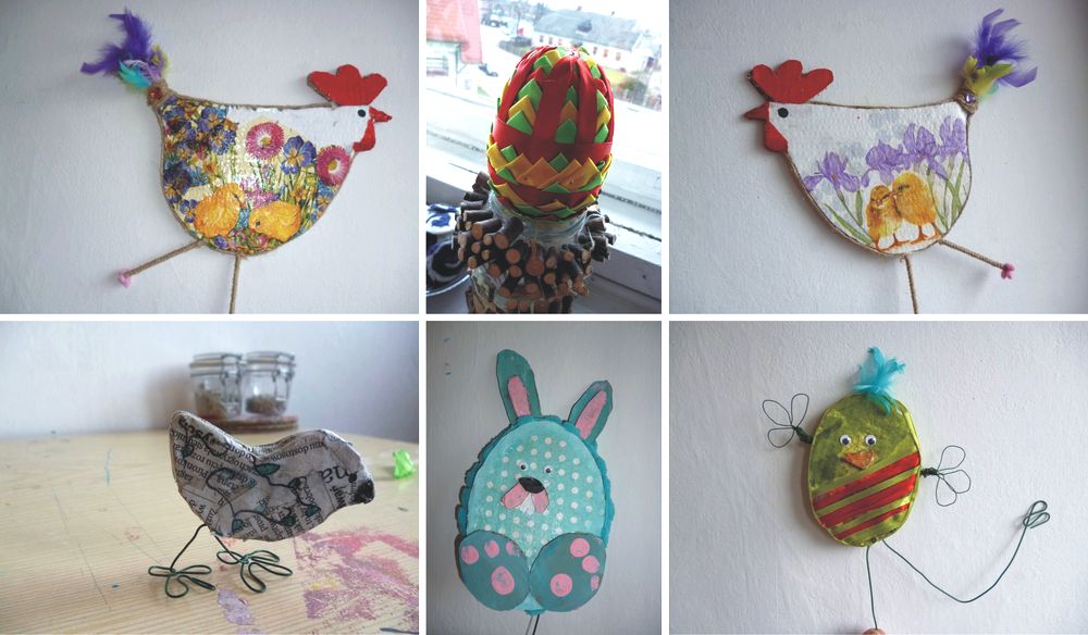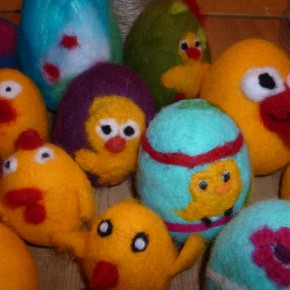 Czas przedświąteczny w pracowni plastycznej minął w bardzo pracowitej atmosferze. Po raz kolejny okazało się, że z tektury, chusteczek, farby, odrobiny kleju i lakieru można stworzyć ciekawe i miłe dla oka kurki, jajeczka oraz króliczki. Wykorzystana została także wełna i powstały filcowane jajeczka. Prace można zobaczyć w budynku GOK-u.