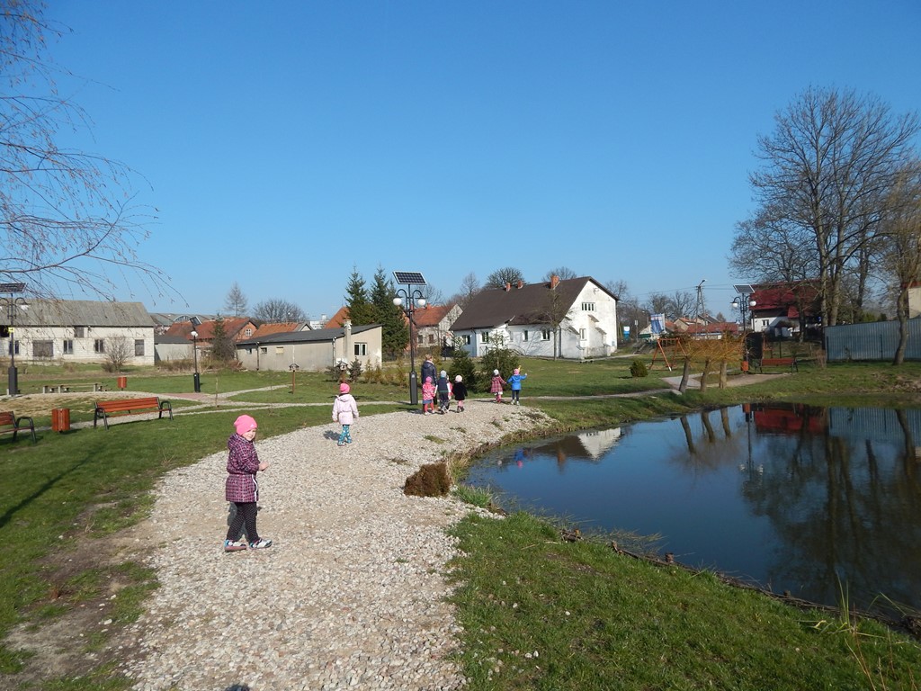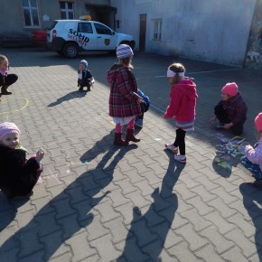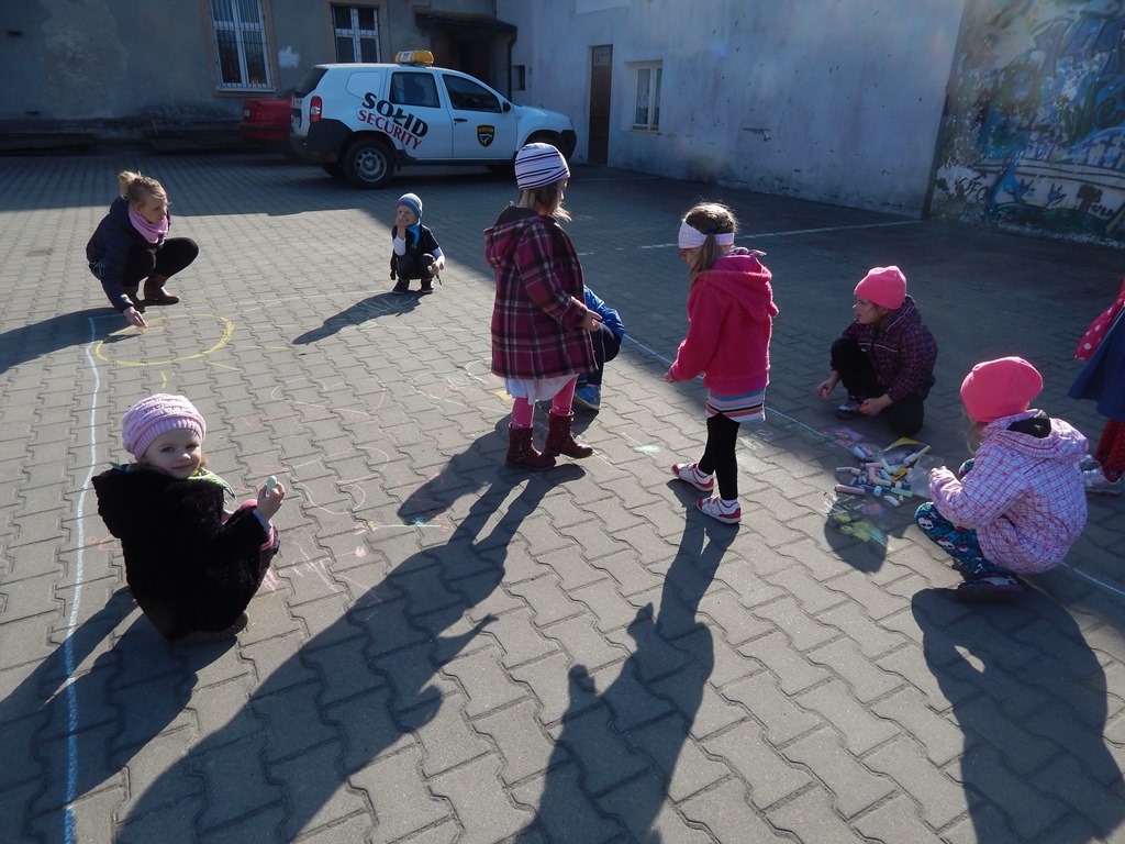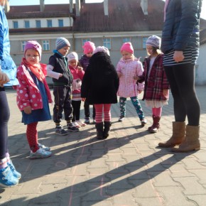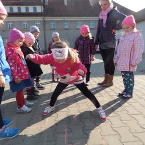A ostatnio była taka piękna pogoda, że na zajęciach graliśmy w klasy i spacerowaliśmy.