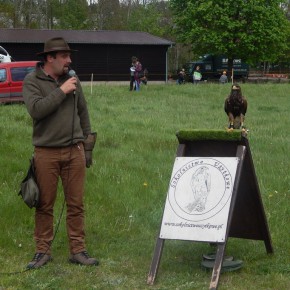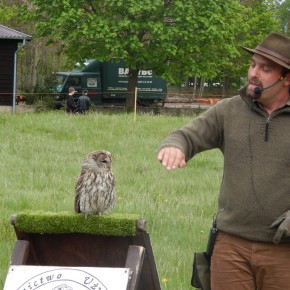Jednym z najbardziej widowiskowych elementów wystawy był pokaz sokolniczy w wykonaniu sokolników z Godziszewa. Jastrzębie, sokoły i samica puchacza Helga z Niemiec były na wyciągnięcie ręki. Każdy z widzów mógł dokładnie obejrzeć jak wyglądają i zachowują się te drapieżne gatunki. Niektóre z prezentowanych ptaków na co dzień pracują na lotnisku przy odstraszaniu wron czy gołębi stanowiących zagrożenie dla samolotów.