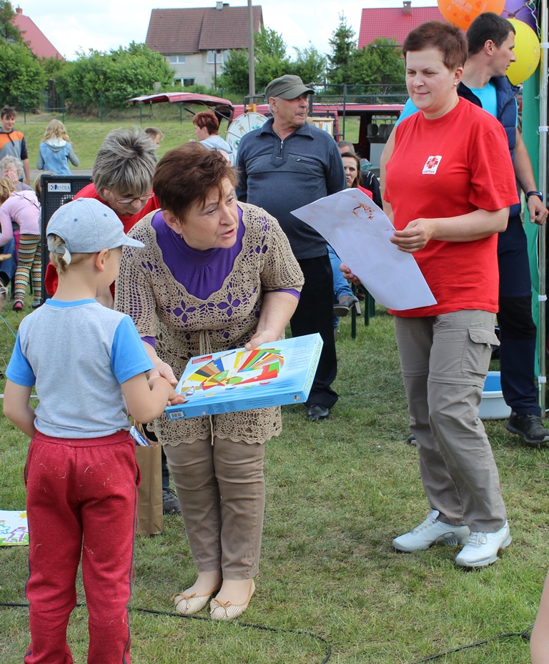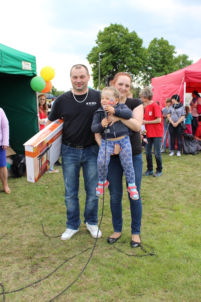 Sobota 30.05.2015 roku upłynęła pod znakiem wspaniałej zabawy. Tego właśnie dnia na Stadionie Sportowym w Jedwabnie odbył się Festyn Rodzinny ?Mama, Tato i Ja?. Festyn ten związany był z obchodami XVII Warmińsko ? Mazurskich Dni Rodziny pod hasłem ? Rodzina Drogowskazem Życia?. W obchodach Dni Rodziny uczestniczyły dzieci z miejscowości Gminy Jedwabno, które dowożone były autobusem. Na dzieci czekało wiele atrakcji oraz nagród. Festyn rozpoczęła Polowa Msza Święta odprawiona przez Księdza Proboszcza Romana Lompa. Następnie rozpoczął się Mecz Piłki Nożnej na wesoło. Zmierzyły się ze sobą drużyny dorosłych (Elżbieta Brzóska Przewodnicząca Rady Gminy Jedwabno, Sławomir Ambroziak Wójt Gminy Jedwabno, Dorota Dudzik Poczta Polska w Jedwabnie, Mariusz Dobrzyński Dyrektor Zespołu Szkół w Jedwabnie, Roman Lompa Ksiądz proboszcz, Jerzy Pałasz Dyrektor Gminnego Ośrodka Kultury w Jedwabnie) kontra dzieci biorące udział w festynie. Głównym punktem programu był konkurs dla Rodzin składający się z dwóch etapów. W owym konkursie wzięło udział sześć Rodzin. Pierwszy to Turniej Sprawnościowy, gdzie rodziny musiały pokonać tor przeszkód związany z domowymi obowiązkami, a drugi to quiz wiedzy o rodzinie i zainteresowaniach. Główną nagrodę, jaką był rower zdobyła rodzina Kopeć, II miejsce Rodzina Pichała (Grill), III miejsce Rodzina Nowosielskich (turystyczny plecak rodzinny), IV miejsce Rodzina Grabowskich i Pac, V miejsce Rodzina Wichowskich. Wszyscy uczestnicy festynu mieli możliwość wzięcia udziału w warsztatach gry na bębnach afrykańskich, czy oglądać pokaz gigantycznych baniek mydlanych. Dodatkowo podczas festynu odbył się także konkurs plastyczny ?Moja Rodzina?. W konkursie plastycznym I miejsce zajęła Karolina i Gabriela Teske, II miejsce Antoni Bagier, III miejsce Szymon Pac. Na zakończenie festynu wszystkie dzieci otrzymały upominek. Podczas festynu każdy mógł skosztować pysznych wypieków przygotowanych przez sołectwa Gminy Jedwabno oraz gofry przygotowywane przez Stowarzyszenie Koło Gospodyń Wiejskich w Szuci. Wszystkim sponsorom i darczyńcom serdecznie dziękujemy. Organizatorem festynu był: Parafialny Zespół Caritas przy Parafii św. Józefa w Jedwabnie, Gmina Jedwabno, Gminny Ośrodek Kultury w Jedwabnie, Gminna Komisja Rozwiązywania Problemów Alkoholowych w Jedwabnie.