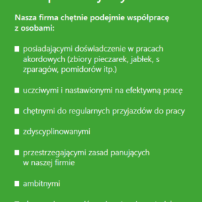 Firma oferuje w pełni legalne i bezpieczne zatrudnienie oraz stałą opiekę Konsultantów. Jako standard osoby pracujące otrzymują w pełni zorganizowany darmowy przejazd w obydwie strony oraz bardzo dobre warunki pracy ? jedne z najwyższych stawek na rynku. Każde zlecenie jest dokładnie weryfikowane ? współpracują jedynie ze sprawdzonymi koordynatorami po stronie niemieckiej. Każdorazowo zapewniają darmowe wyżywienie i darmowy osobny pokój.