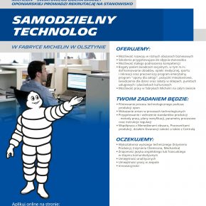 Osoby zainteresowane ofertą pracy zachęcamy do składania aplikacji poprzez link praca.michelin.pl.