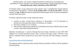 Ogłoszenie o rozpoczęciu Konsultacji Społecznych w sprawie Strategii Rozwoju Gminy Jedwabno na lata 2025- 2035
