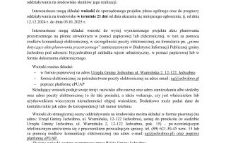 Wójt Gminy Jedwabno informuje o ponownej możliwości składania wniosków do Planu Ogólnego do 03.01.2025r. Wszystkie wnioski złożone do tej pory zostaną rozpatrzone, nie ma konieczności ponownego składania wniosków. Formularz oraz instrukcja wypełnienia znajdują się pod linkiem https://bip.jedwabno.pl/6290/etap-i-przystapienie-do-sporzadzenia-planu-ogolnego-formularz-do-skladania-wnioskow.html
