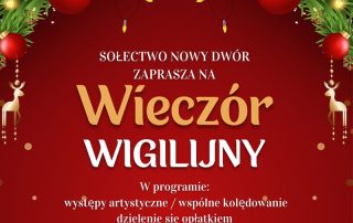 Sołectwo Nowy Dwór zaprasza mieszkańców swojej miejscowości na „Wieczór Wigilijny”, [...]