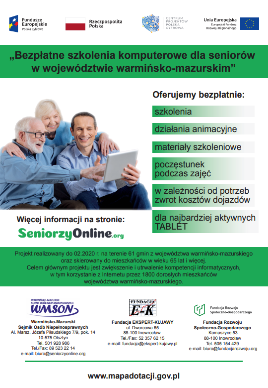 Warmińsko-Mazurski Sejmik Osób Niepełnosprawnych realizuje projekt pt.:Bezpłatne szkolenia komputerowe dla [...]