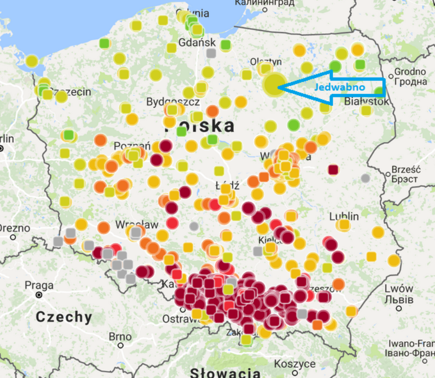 Sprawdź jakość powietrza w Jedwabnie! Czujnik jakości powietrza zainstalowany.