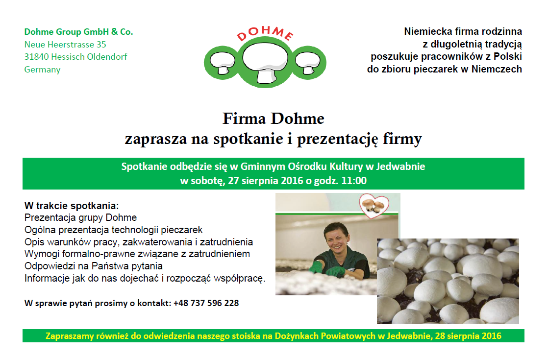 Firma poszukuje pracowników z Polski do zbioru pieczarek w Niemczech. [...]