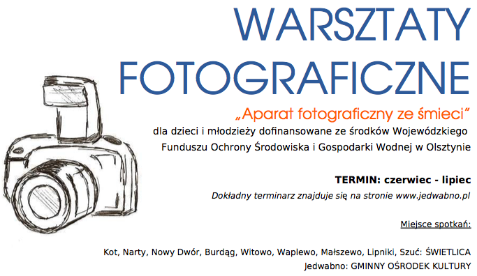TERMINARZ WARSZTATÓW FOTOGRAFICZNYCH CZERWIEC 08.06.2015 - Lipniki godz: 16:30-19:30 09.06.2015 - Jedwabno [...]
